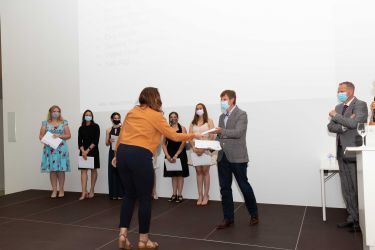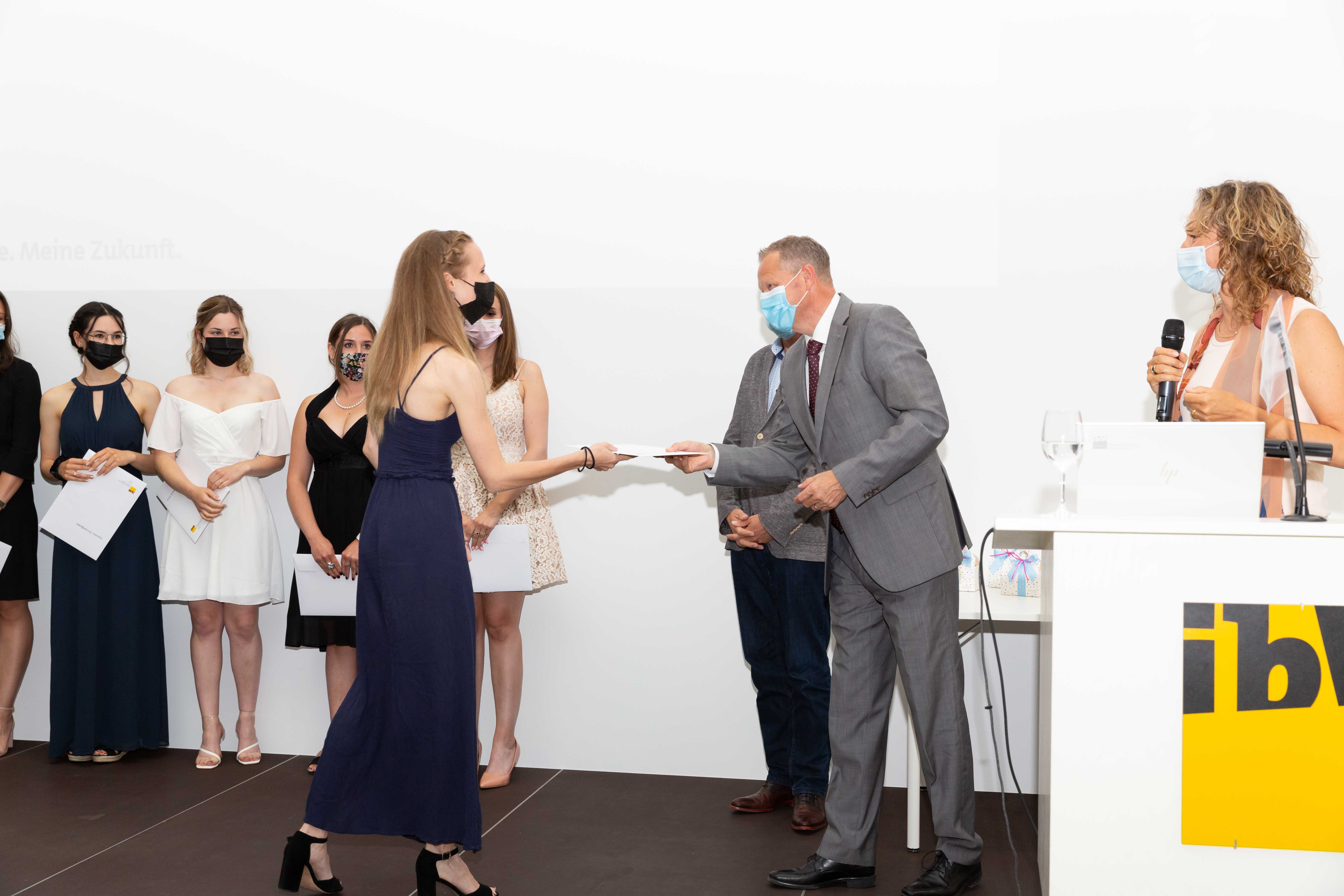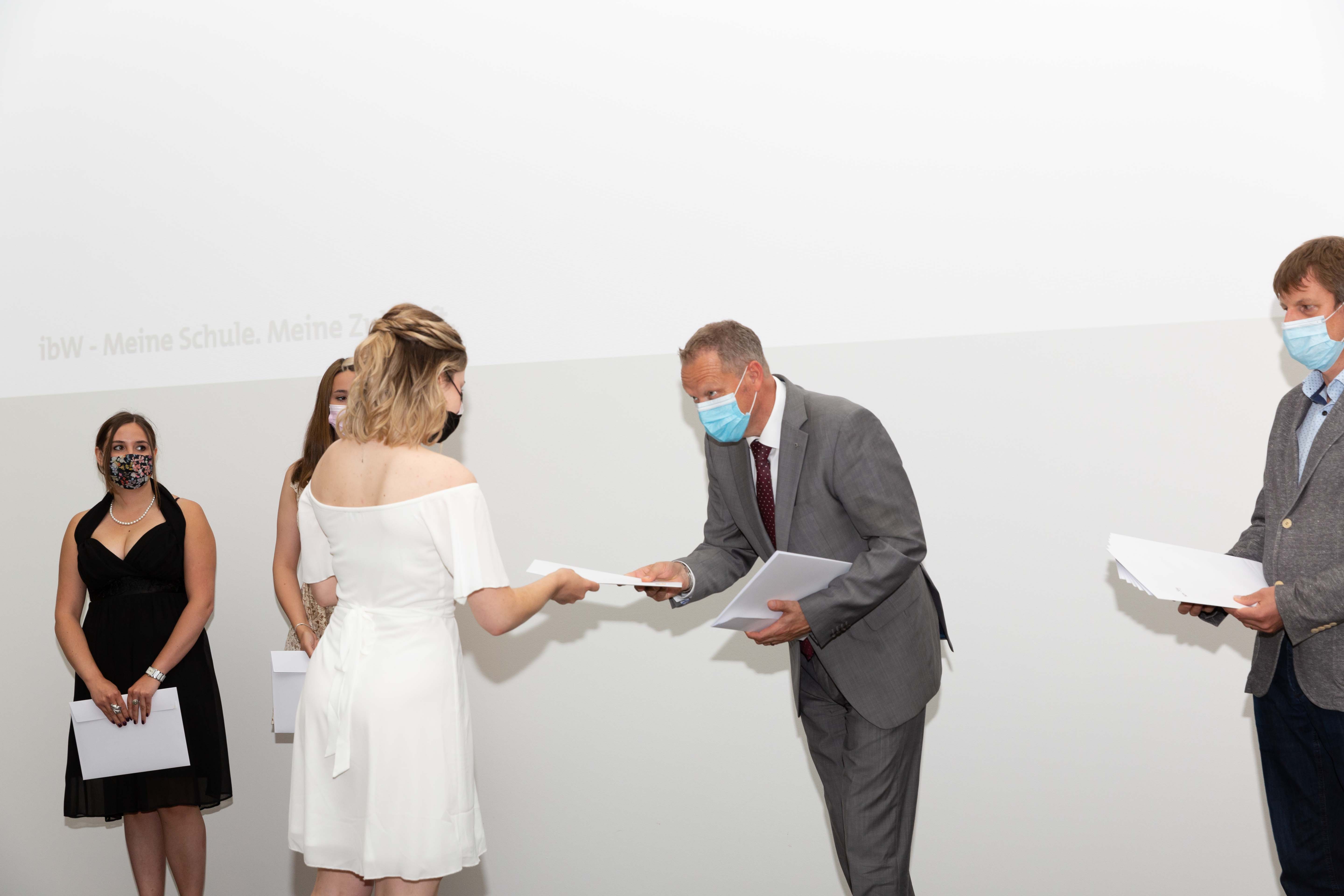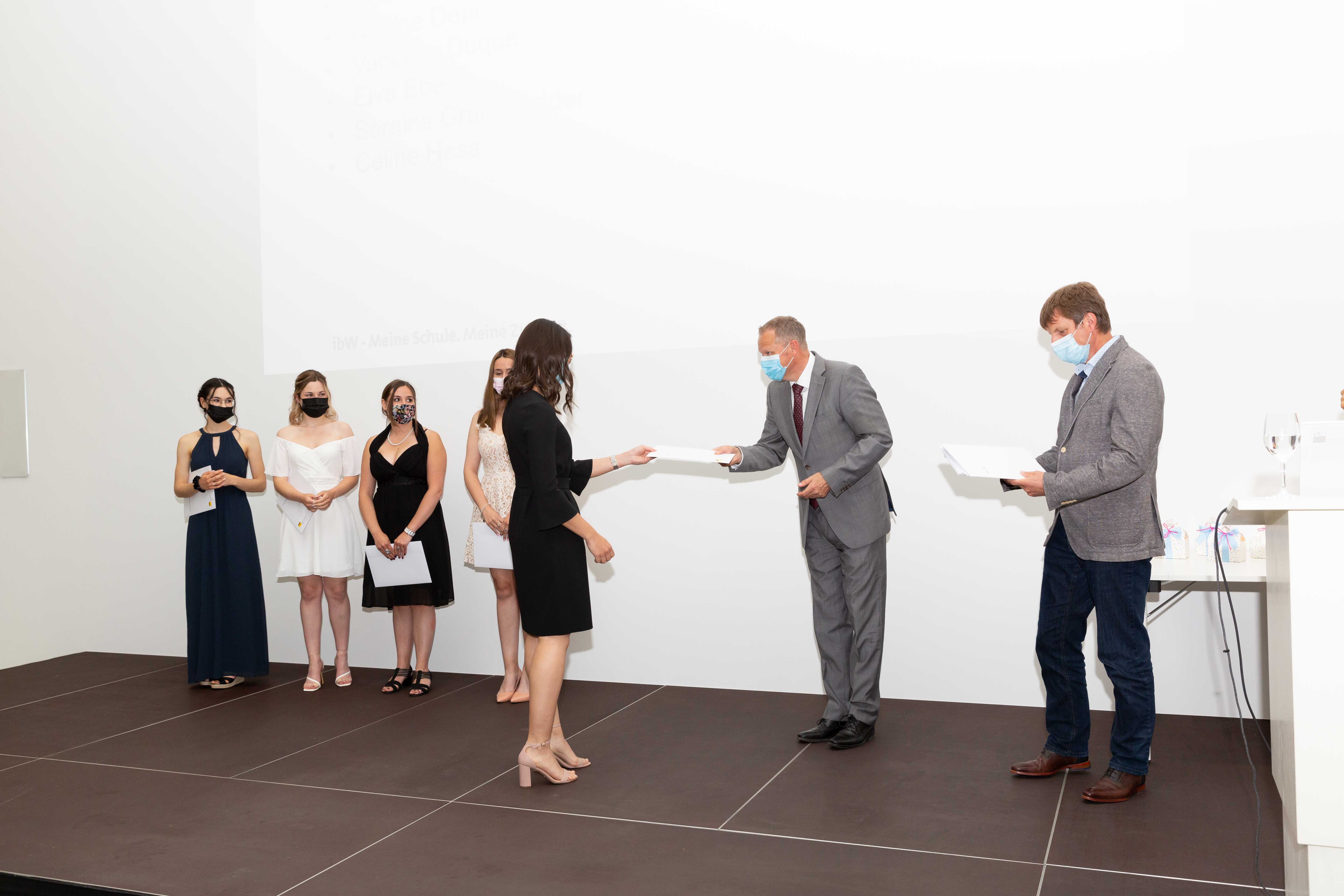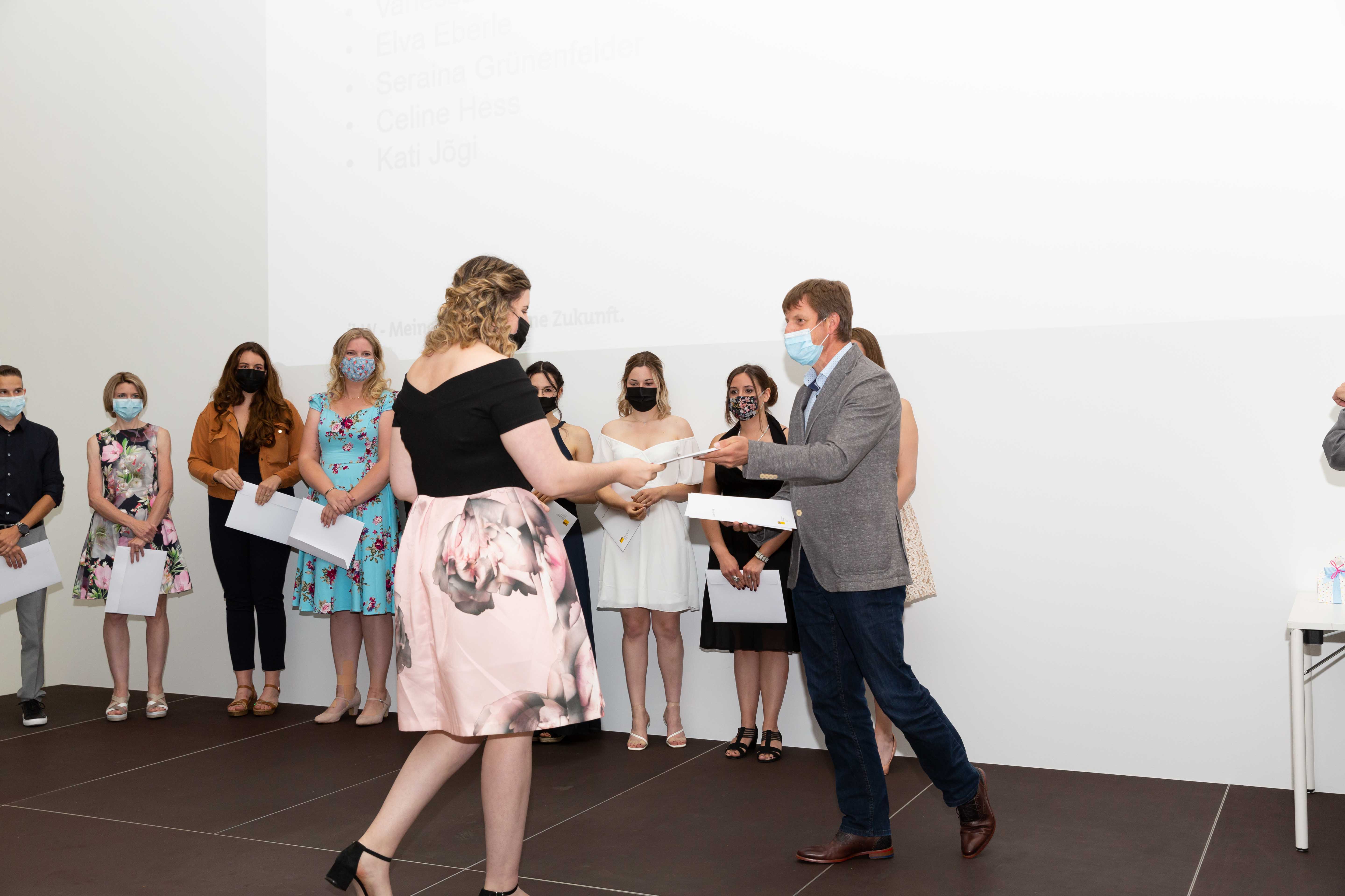 Am 2. Juli fand in der Aula der ibW in Chur die (corona-bedingt) im kleinen Rahmen gehaltene Diplomfeier der Klasse Handelsdiplom VSH statt. Nach der Begrüssung durch die Fachvorsteherin Iris Lüchinger Lohri und einem Rückblick auf den Lehrgang, welcher vorwiegend im Fernunterricht stattgefunden hat, durften die 15 erfolgreichen Absolventinnen und Absolventen das lang ersehnte VSH-Diplom entgegennehmen. Die Diplomübergabe wurde durch den Schulleiter Wirtschaft, Michael Meier, und dem Direktor, Stefan Eisenring, vorgenommen. Anschliessend wurde bei einem gemeinsamen Apéro auf den erfolgreichen Abschluss angestossen.