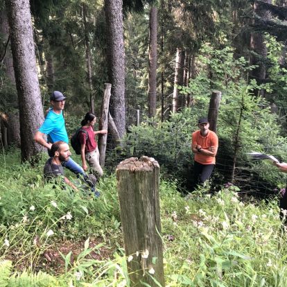 Martin Candinas liess sich nicht zweimal bitten, sich von einem Fachmann durch den Schutzwald seiner Heimatgemeinde führen zu lassen. Da Lucian Berther sein Praktikum beim Amt für Wald und Naturgefahren Graubünden absolviert, nutzten auch der Kantonsförster Urban Maissen und der Leiter der Waldregion Surselva Renaldo Lutz die Gelegenheit, den hohen Gast zu begleiten. Zusammen mit dem ebenfalls teilnehmenden Leiter der Schule Wald Beat Philipp und der Forstingenieurpraktikantin Lucie Roth durfte der angehende Förster schliesslich ein recht ansehnliches Publikum zu der von ihm bestens vorbereiteten Exkursion begrüssen. Unterstützt wurde Lucian bei diesem Anlass vom scheidenden Sumvitger Förster Flurin Cathomas und dessen designiertem Nachfolger und aktuell auch noch Försterpraktikanten Beat Cadruvi.