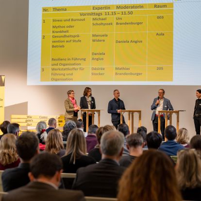 Wie Betroffene nach überstandener Burnout-Erkrankung Begleitung finden, erläuterte in der letzten Keynote Markus Zwicky, Präsident von Equilibrum, einem schweizweit aktiven Verein zur Bewältigung von Depressionen in Selbsthilfegruppen. Ein Burnout sei ein moderneres Wort für Erschöpfungsdepression, so Zwicky, der betonte: «Depressionen sind keine Schande, sondern eine Krankheit, die bewältigt werden kann. Sprechen wir darüber!» Der Verein setze sich primär für eine Entstigmatisierung von psychischen Krankheiten ein - ein Vorum, was alle Rednerinnen und Redner unterstützten.