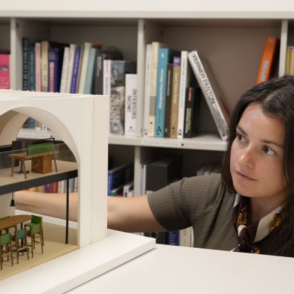 Im Zentrum steht für Bottoni ein einzigartiger Mix aus Gestaltung und technischer Umsetzung: «Bei uns wiegt beides gleich. Wir entwerfen nicht nur schöne Konzepte - wir setzen sie auch konstruktiv um, so dass sie in Realität auch wirklich gebaut werden können. Das ist ein grosser Unterschied zu vielen anderen Schulen.» Dazu gehört auch die Beherrschung von branchenüblichen Computeranwendungen (CAD-Zeichnen, Visualisieren etc.). Die Studierenden arbeiten bereits während des Studiums mit echten Projekten. Mindestens 50 % Berufstätigkeit ist Voraussetzung - und wird so zur wertvollen Ressource: Das Gelernte fliesst direkt in die Arbeit ein, die Arbeit wiederum inspiriert das Lernen. Neben der Praxisorientierung, dem Fokus auf Konzeption und qualitativer Gestaltung betont Bottoni die starke Infrastruktur – etwa das hauseigene Technologiezentrum, in dem Prototypen gebaut und Möbeldesigns im Massstab 1:1 umgesetzt oder räumliche Modelle erstellt werden. Und nicht zuletzt findet der Unterricht an einem besonderen Ort statt: in einem 400-jährigen umgebauten Gebäude im Herzen Maienfelds – ein inspirierender Lernort, der Geschichte und Zukunft verbindet.