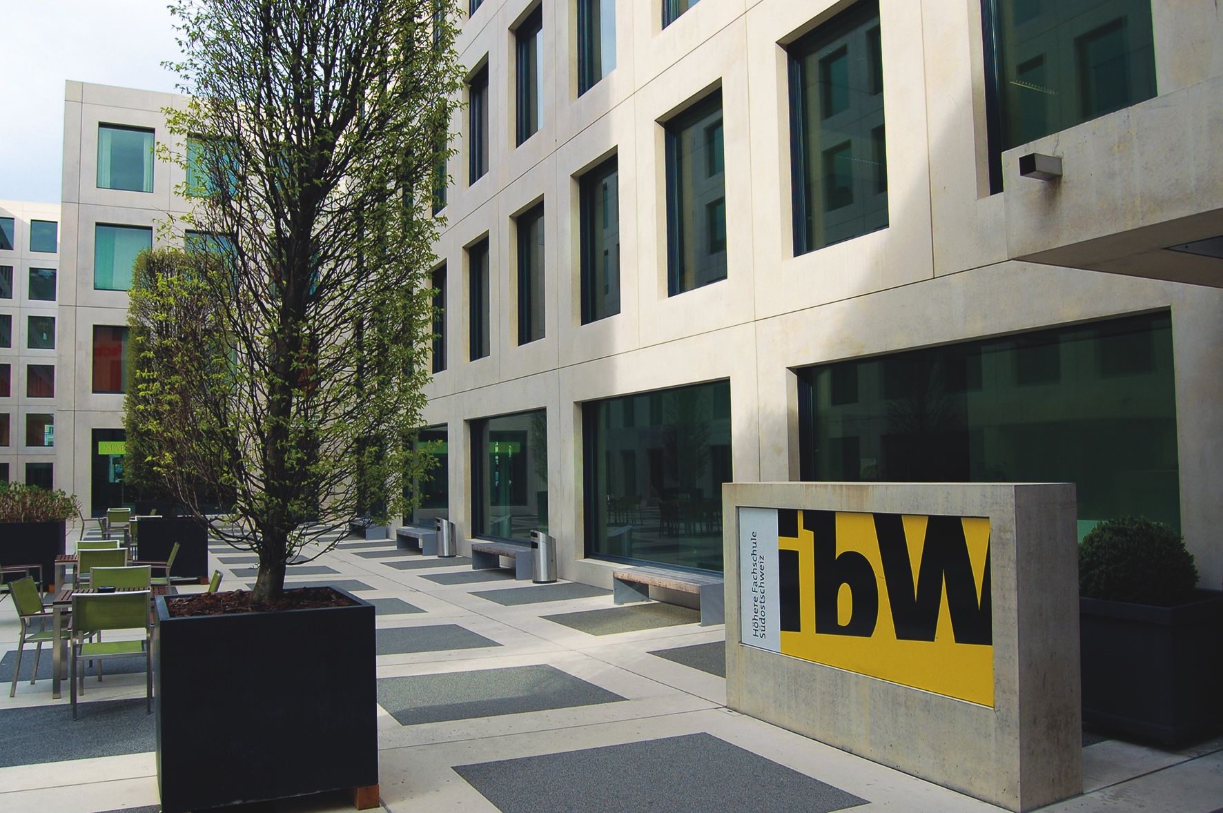 Der Hauptsitz der ibW befindet sich direkt am Bahnhof der Bündner Alpenstadt Chur. Das Gebäude mit seiner zentralen Lage bietet eine hervorragende Anbindung an den öffentlichen Verkehr. Die Räumlichkeiten sind hell, grosszügig und mit moderner Infrastruktur ausgestattet. Sie können auch für externe Anlässe gemietet werden, darunter auch eine Aula mit moderner Einrichtung und Livestreaming-Möglichkeiten.